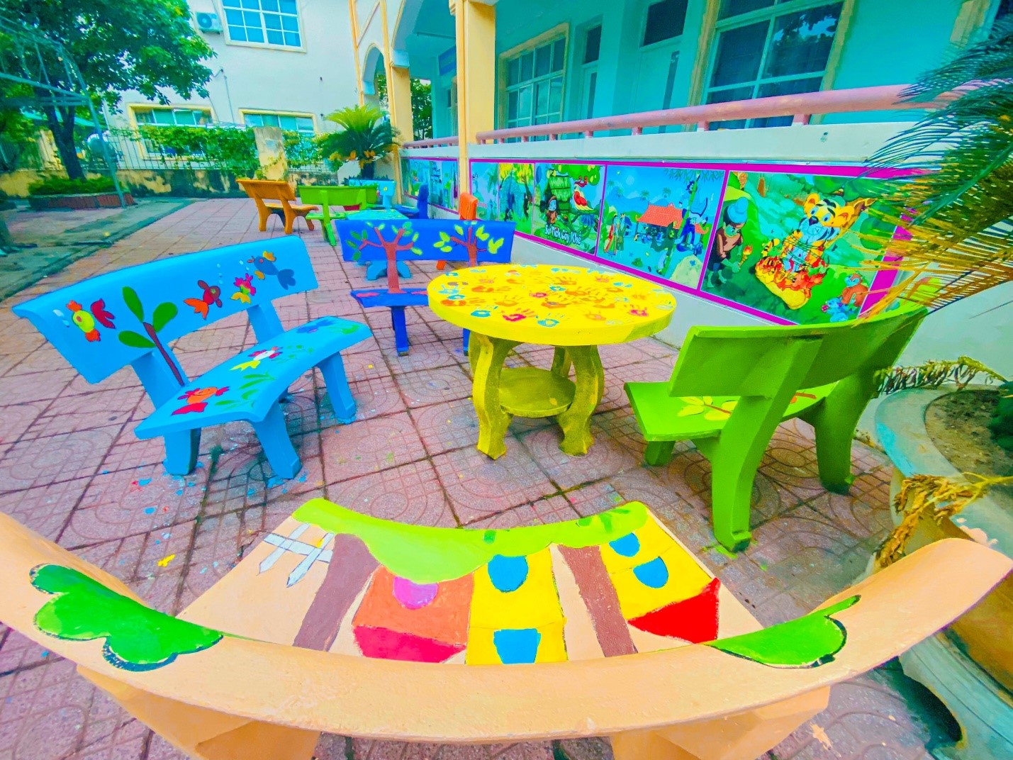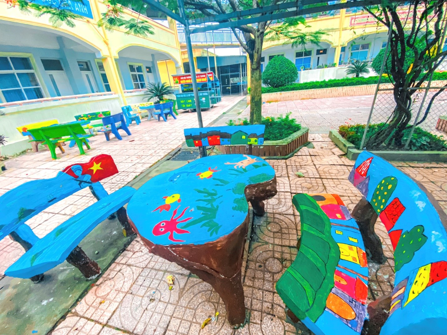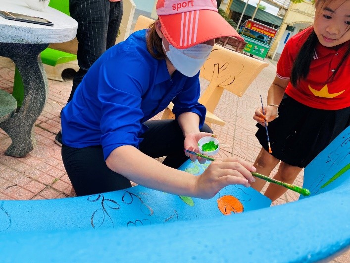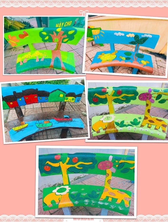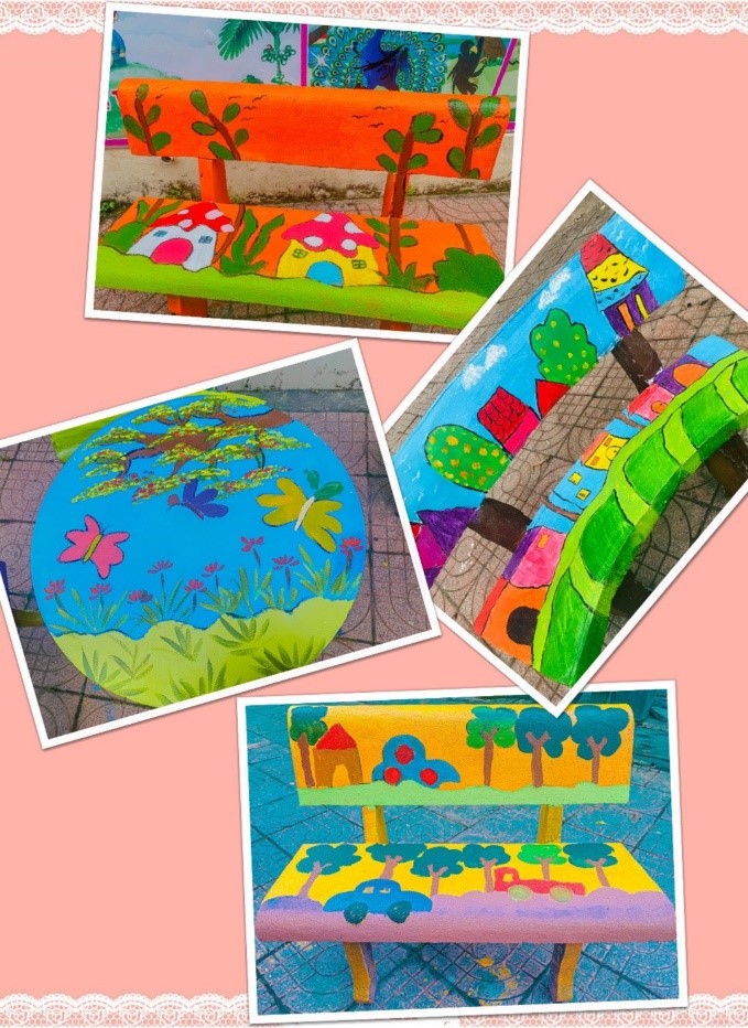 Các bức vẽ trên những bộ bàn ghế đều được các ĐVTN và học sinh tâm huyết thực hiện với những hình ảnh và ý tưởng độc đáo. Những bức tranh vẽ càng đẹp hơn khi được thầy cô và học sinh đặt cả tâm huyết, sự sáng tạo của mình trong từng nét cọ, gam màu. Với sự khéo léo, ĐVTN đã tạo nên những tác phẩm đẹp, ý nghĩa, không những tạo được cảnh quan khuôn viên nhà trường thêm xanh, sạch, đẹp mà còn tạo ra sự thích thú, niềm vui cho trẻ khi quay trở lại trường sau mùa dịch Covid-19.