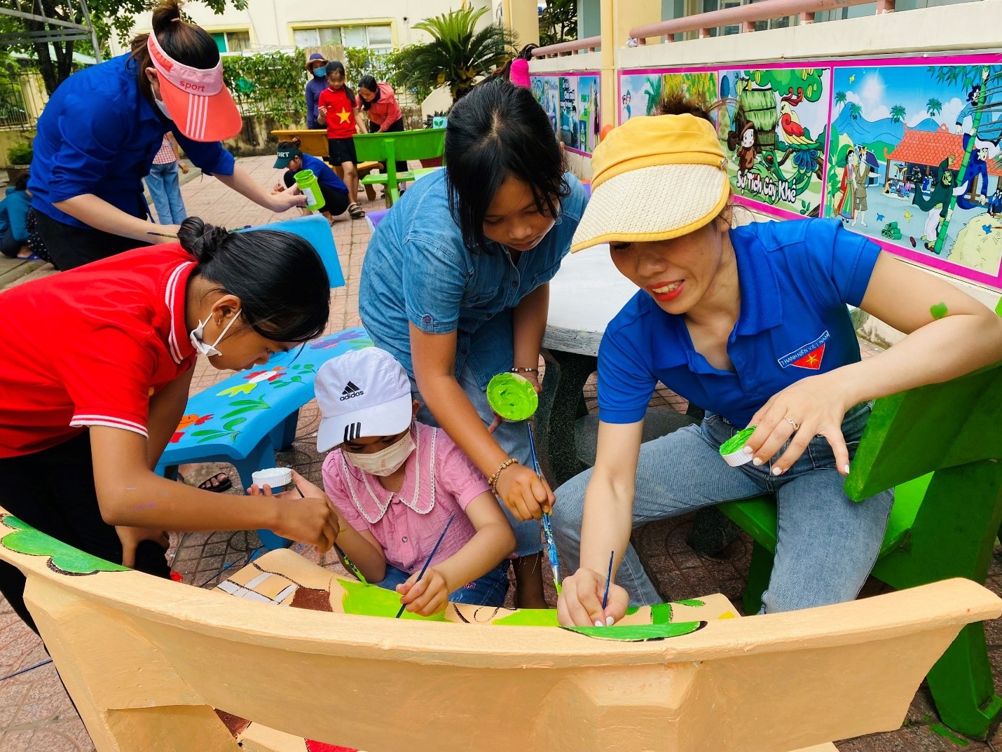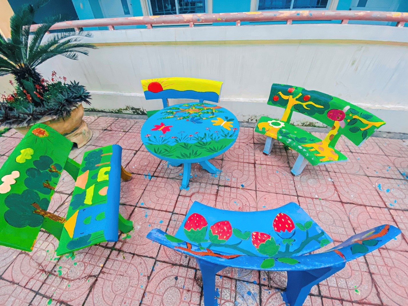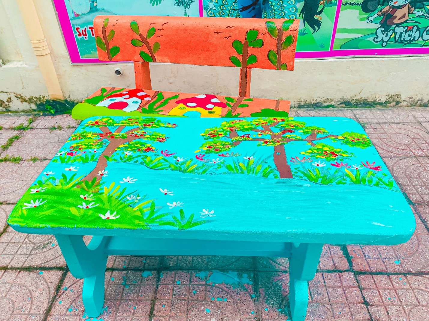Các bức vẽ trên những bộ bàn ghế đều được các ĐVTN và học sinh tâm huyết thực hiện với những hình ảnh và ý tưởng độc đáo. Những bức tranh vẽ càng đẹp hơn khi được thầy cô và học sinh đặt cả tâm huyết, sự sáng tạo của mình trong từng nét cọ, gam màu. Với sự khéo léo, ĐVTN đã tạo nên những tác phẩm đẹp, ý nghĩa, không những tạo được cảnh quan khuôn viên nhà trường thêm xanh, sạch, đẹp mà còn tạo ra sự thích thú, niềm vui cho trẻ khi quay trở lại trường sau mùa dịch Covid-19.