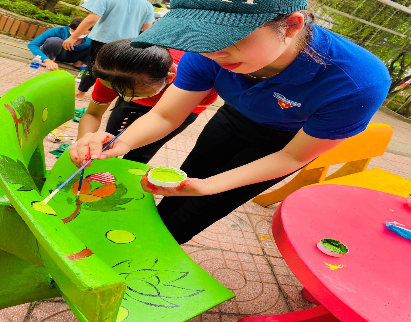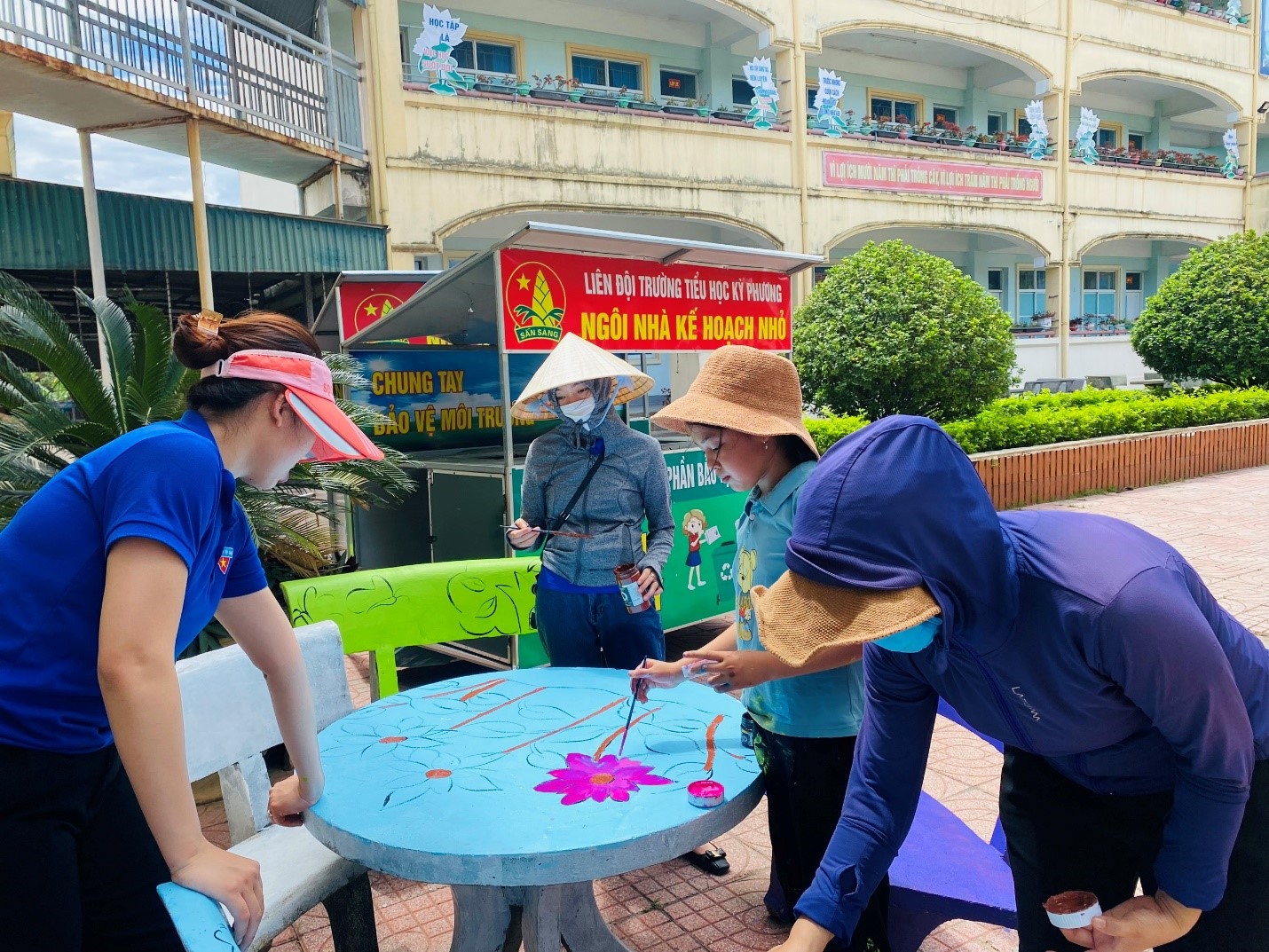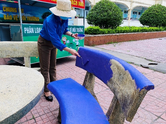Sáng ngày 13/05/2022, toàn thể ĐVTN chi đoàn trường Tiểu học Kỳ Phương đã có mặt rất sớm tại trường để bắt tay vào công việc vẽ, sơn mới tất cả những bộ bàn, ghế đá trong sân trường. Sau khi ghế đá được phát thảo sơ bộ các hình vẽ, tất cả ĐVTN đã nhanh chóng lấy sơn, cọ, cây lăn để tiến hành sơn màu cho ghế đá.