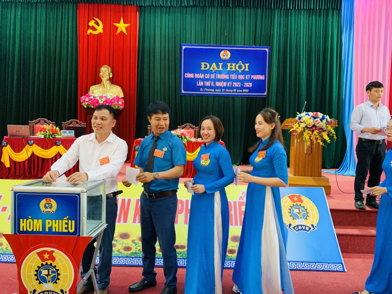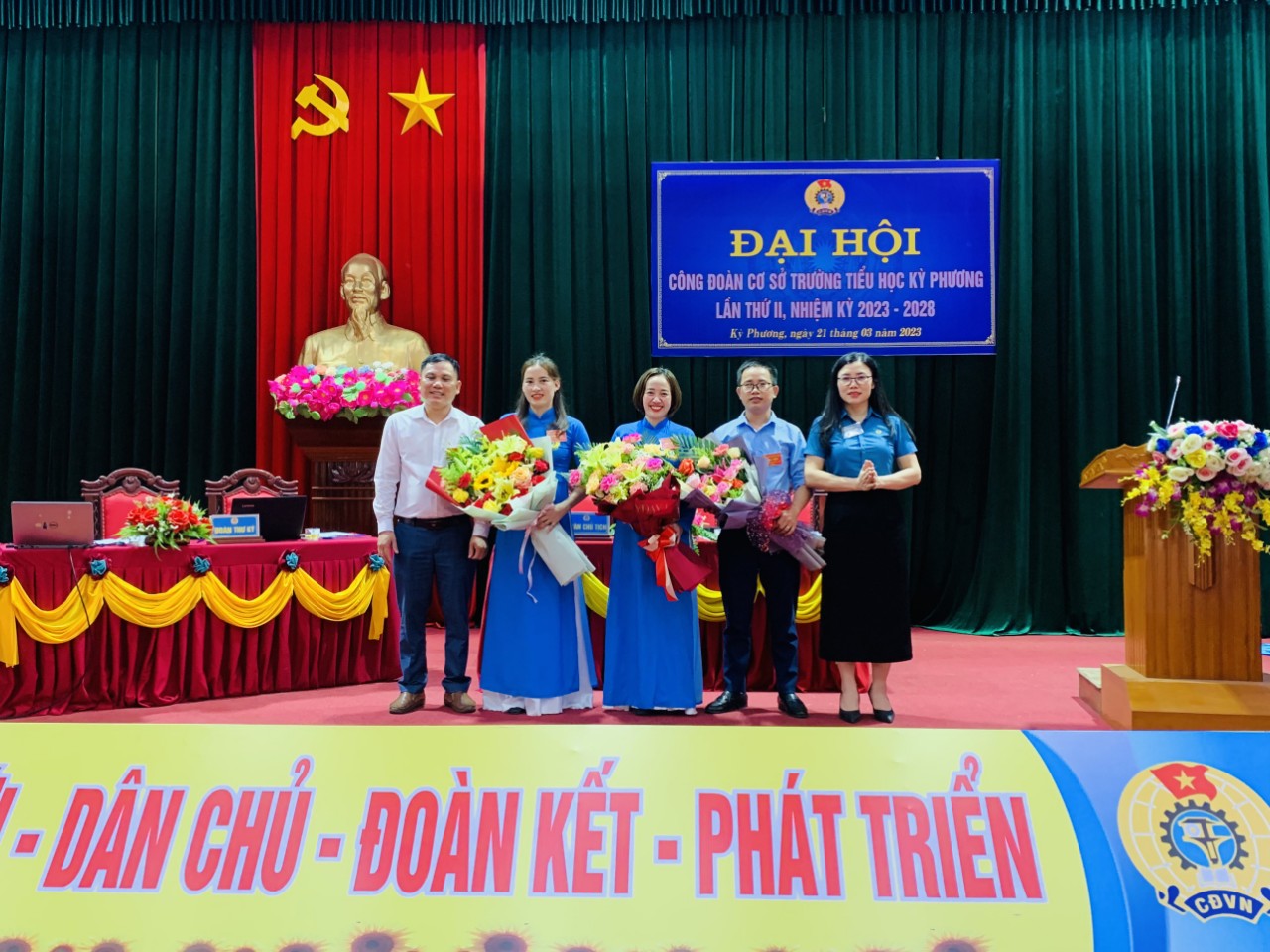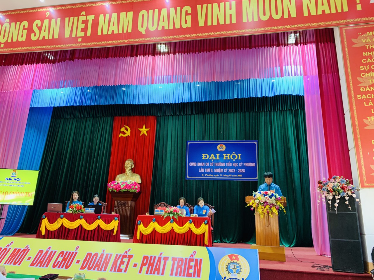 Đại hội đã bầu ra BCH CĐCS TH Kỳ Phương nhiệm kỳ 2023-2028 gồm 3 đồng chí đáp ứng yêu cầu nhiệm vụ, bầu UBKT gồm 3 đồng chí và Đại hội cũng bầu chọn được 3 đồng chí là đoàn viên tiêu biểu tham dự Đại hội Liên đoàn Lao động Thị xã Kỳ Anh.