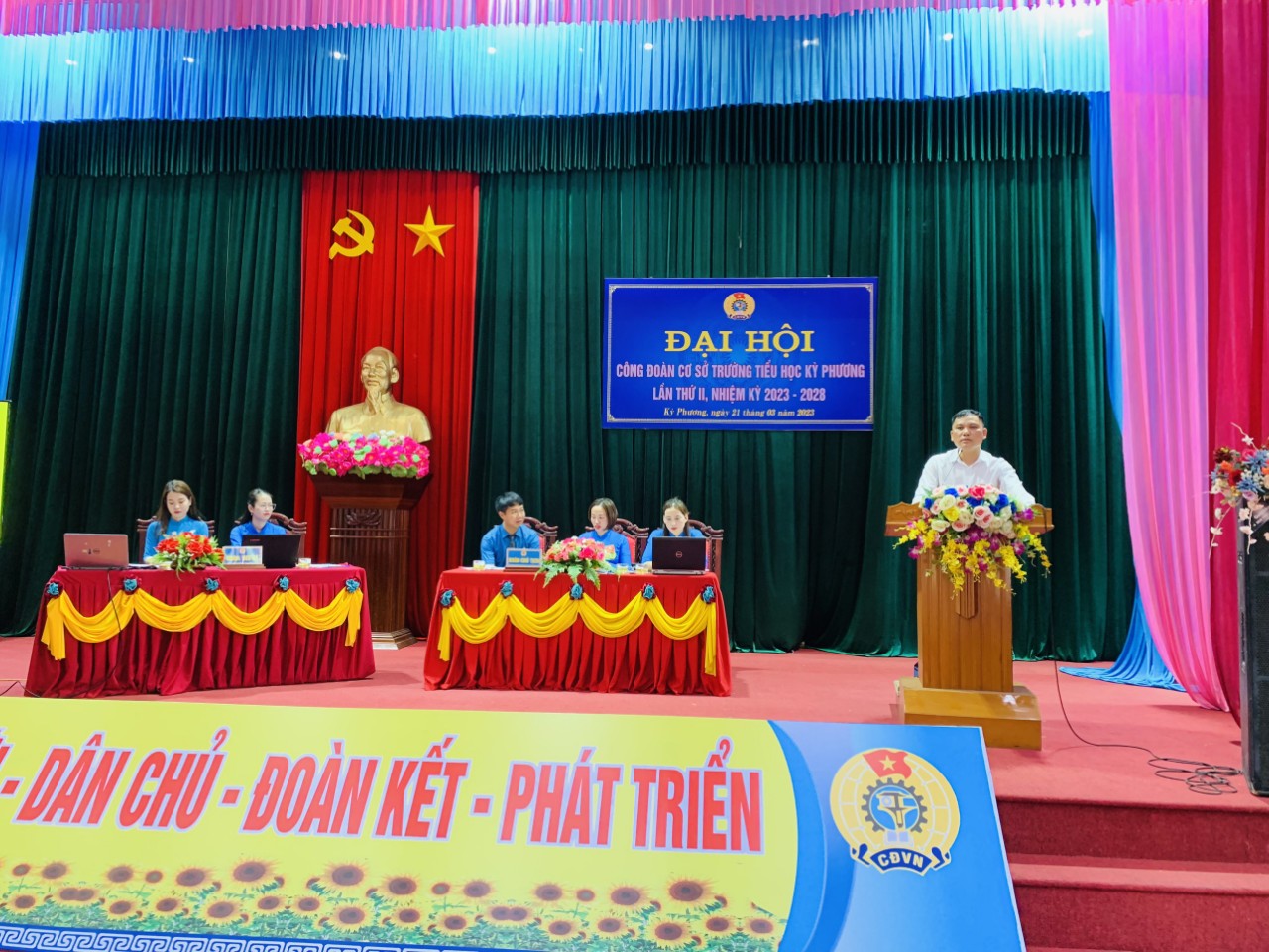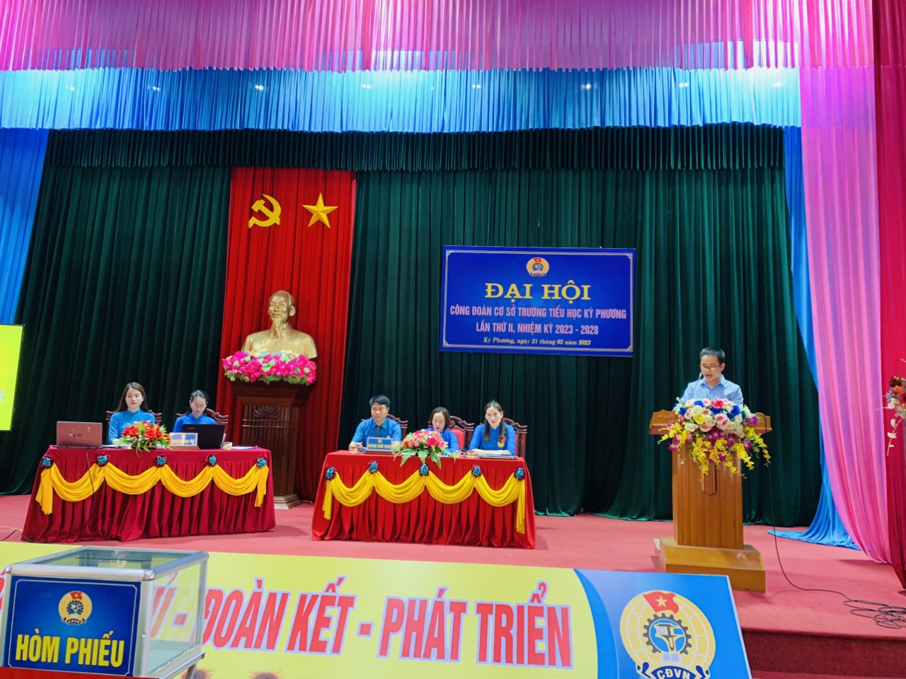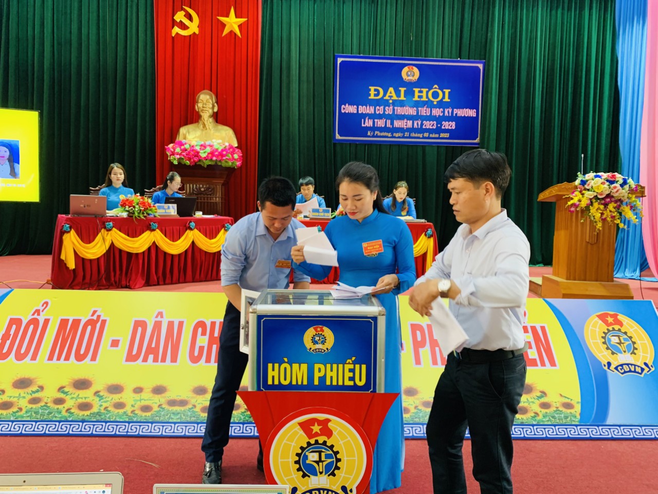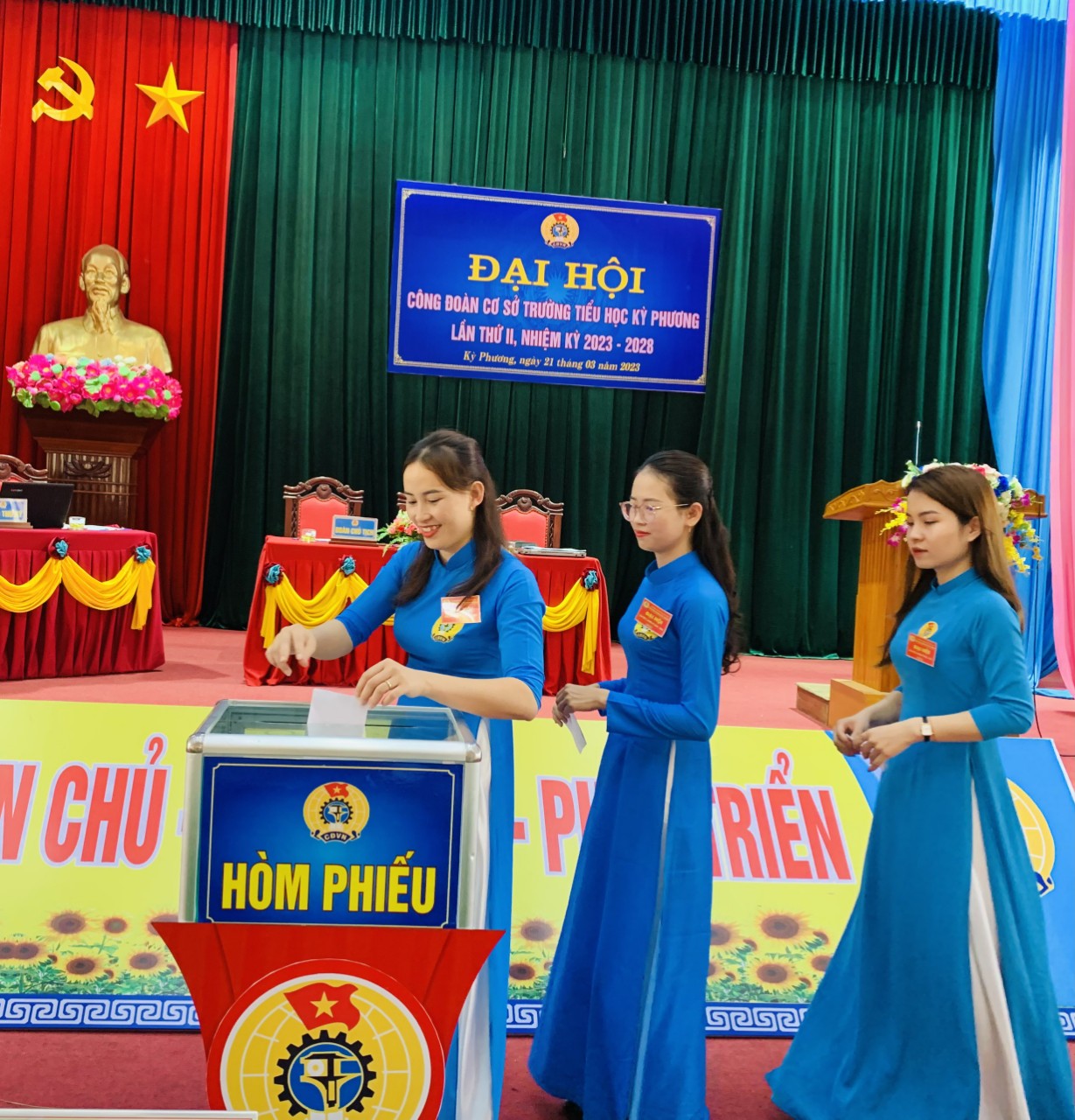 Đại hội đã bầu ra BCH CĐCS TH Kỳ Phương nhiệm kỳ 2023-2028 gồm 3 đồng chí đáp ứng yêu cầu nhiệm vụ, bầu UBKT gồm 3 đồng chí và Đại hội cũng bầu chọn được 3 đồng chí là đoàn viên tiêu biểu tham dự Đại hội Liên đoàn Lao động Thị xã Kỳ Anh.