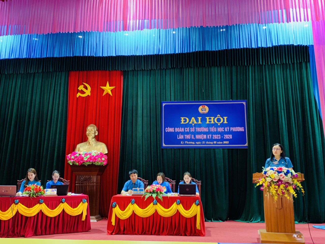 Đại hội vui mừng được sự tham dự và chỉ đạo của đồng chí Nguyễn Thị Thắm – Phó Chủ tịch, phụ trách LĐLĐ Thị xã Kỳ Anh, đồng chí Hoàng Văn Thắm –Phó Chủ tịch UBND phường Kỳ Phương, đồng chí Nguyễn Văn Tín – Phó Chủ tịch Hội đồng Nhân dân phường; ông Nguyễn Văn Thành - Trưởng Ban đại diện cha mẹ học sinh trường; ông Hoàng Nhật Tiến – Bí thư chi bộ, Hiệu trưởng nhà trường cùng với sự tham gia của toàn thể đoàn viên công đoàn cơ sở trường Tiểu học Kỳ Phương.