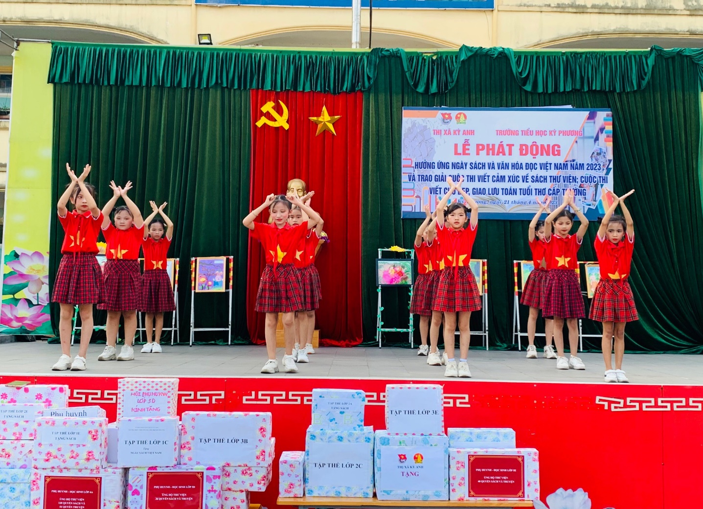 Ngay từ đầu tháng, cả trường đã sôi động với cuộc thi “Viết cảm xúc về sách thư viện giành cho khối 4,5”; “Vẽ và giới thiệu cuốn sách em yêu giành cho học sinh khối 1,2,3” do nhà trường tổ chức. Trong 20 bài viết xuất sắc được nhà trường chọn gửi thi cấp Thị xã, em Nguyễn Trần Trà My lớp 5D đã xuất sắc giành giải Nhất với bài viết giới thiệu về cuốn sách “Chiến binh cầu vồng”, em Nguyễn Hà Linh đạt giải Ba và em Đinh Nguyễn Gia Hân đạt giải Khuyến khích.