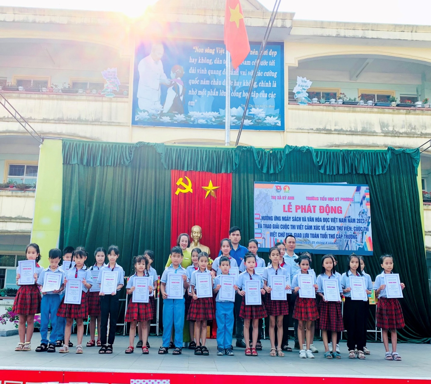 Ngày 21/04, trong lễ phát động ngày sách Việt Nam do Liên đội trường Tiểu học Kỳ Phương kết hợp với Ban thư viện nhà trường tổ chức, Ban giám hiệu đã trao thưởng nhiều em học sinh đạt các giải trong các cuộc thi, hội thi và giao lưu trong thời gian qua. Có thể nói đây là những phút mong chờ nhất của những bạn đạt giải đan xen cảm xúc ngưỡng mộ của nhiều bạn nhỏ khác.