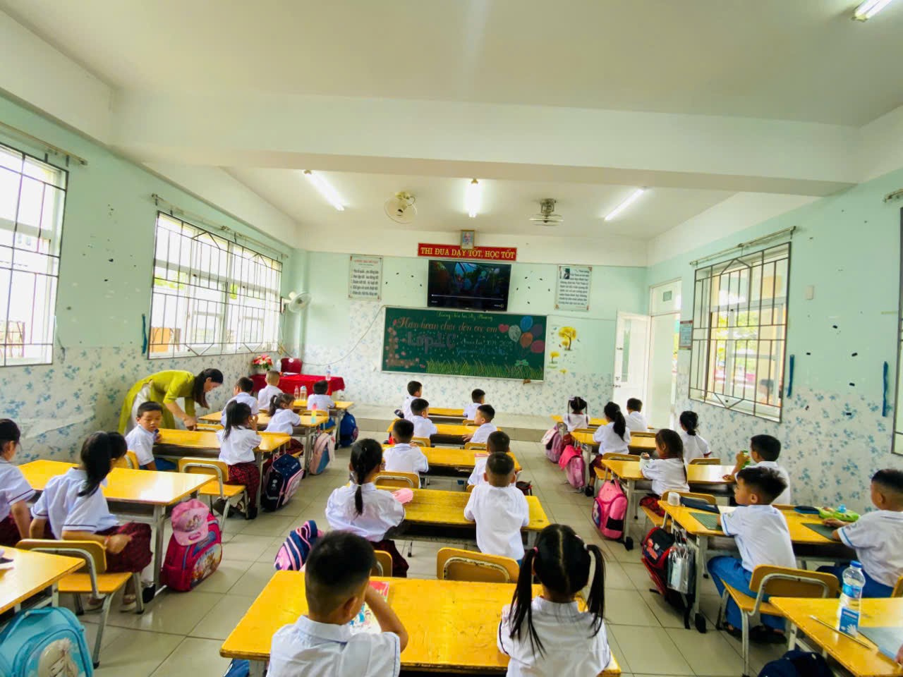 Để các em có ấn tượng tốt trong ngày đầu đến trường, cả tuần trước đó các thầy cô giáo cùng quý phụ huynh đã tập trung vào việc thu dọn, trang trí làm đẹp cảnh quan, sửa sang bồn hoa cây cảnh, vệ sinh lớp học, kê bàn ghế, trang trí cờ hoa lộng lẫy,…