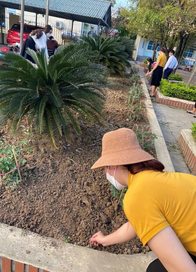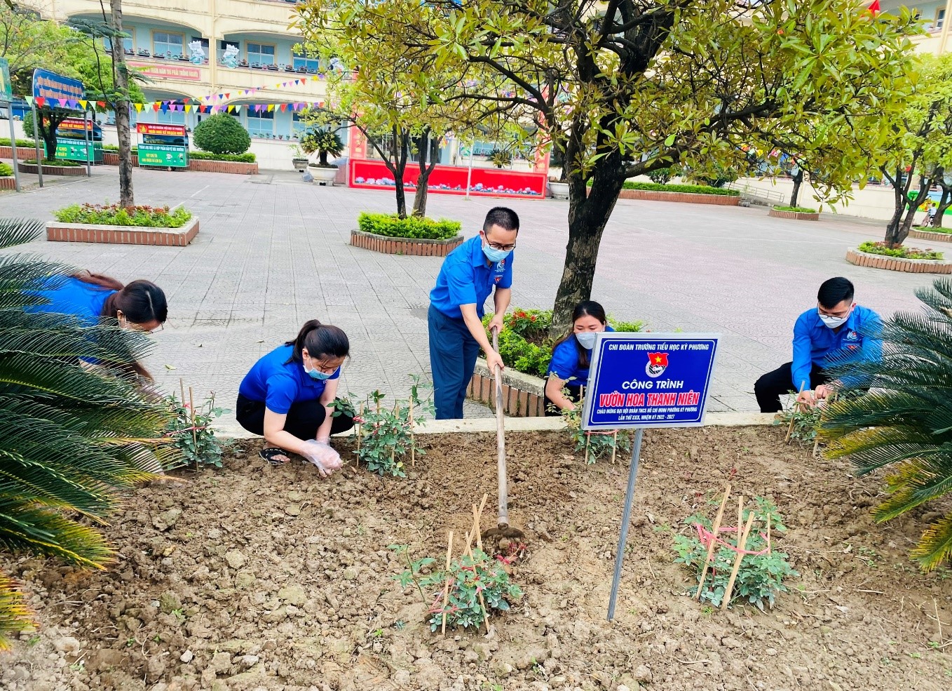 Được sự cho phép và quan tâm hỗ trợ kinh phí của lãnh đạo nhà trường, các đoàn viên chi đoàn trường Tiểu học Kỳ Phương đã ra quân trồng, chăm sóc các bồn hoa trong khuôn viên cơ quan. Theo đó, Đoàn trường đã thực hiện cải tạo 2 bồn hoa lớn phía trước sân trường.