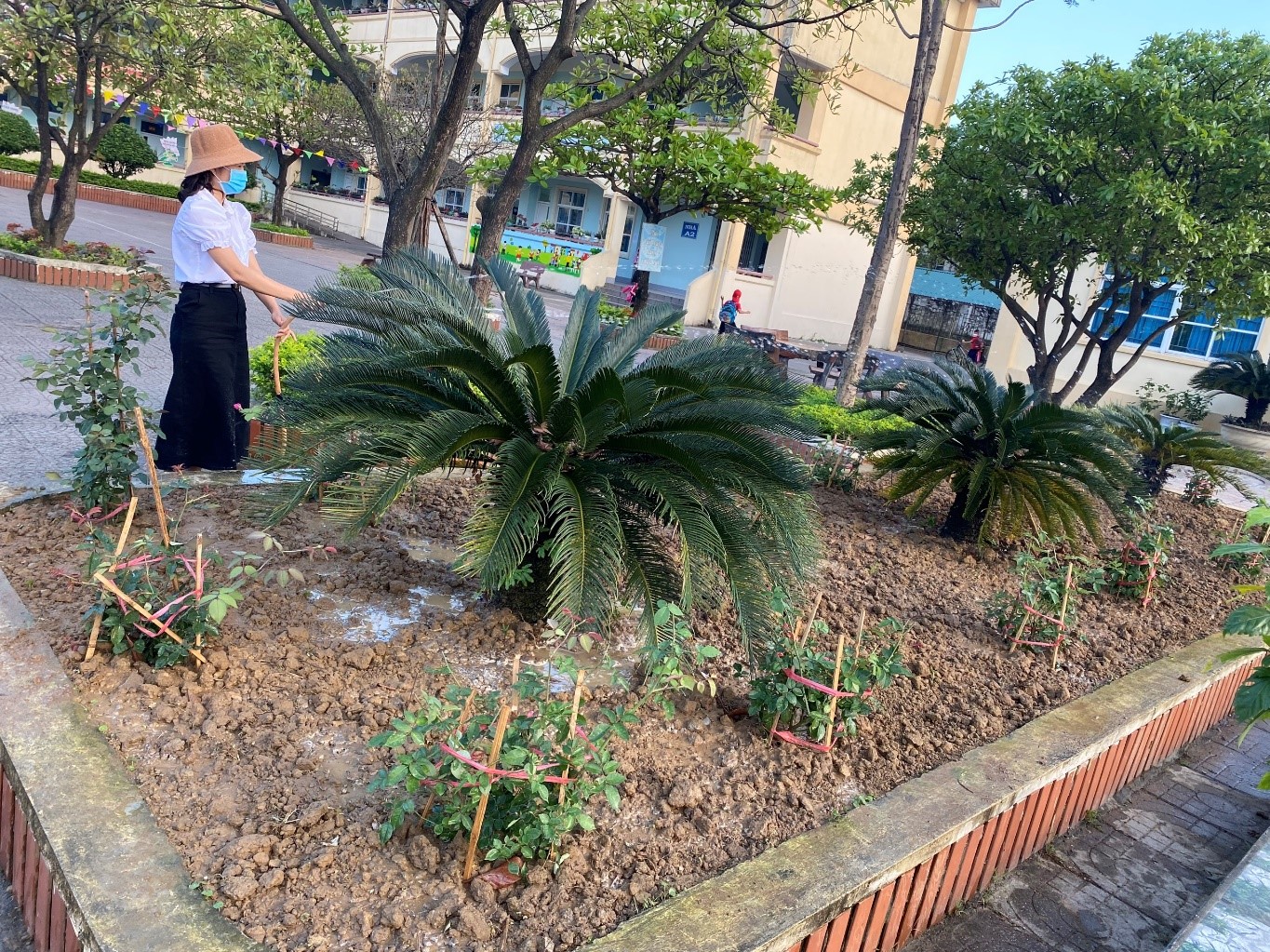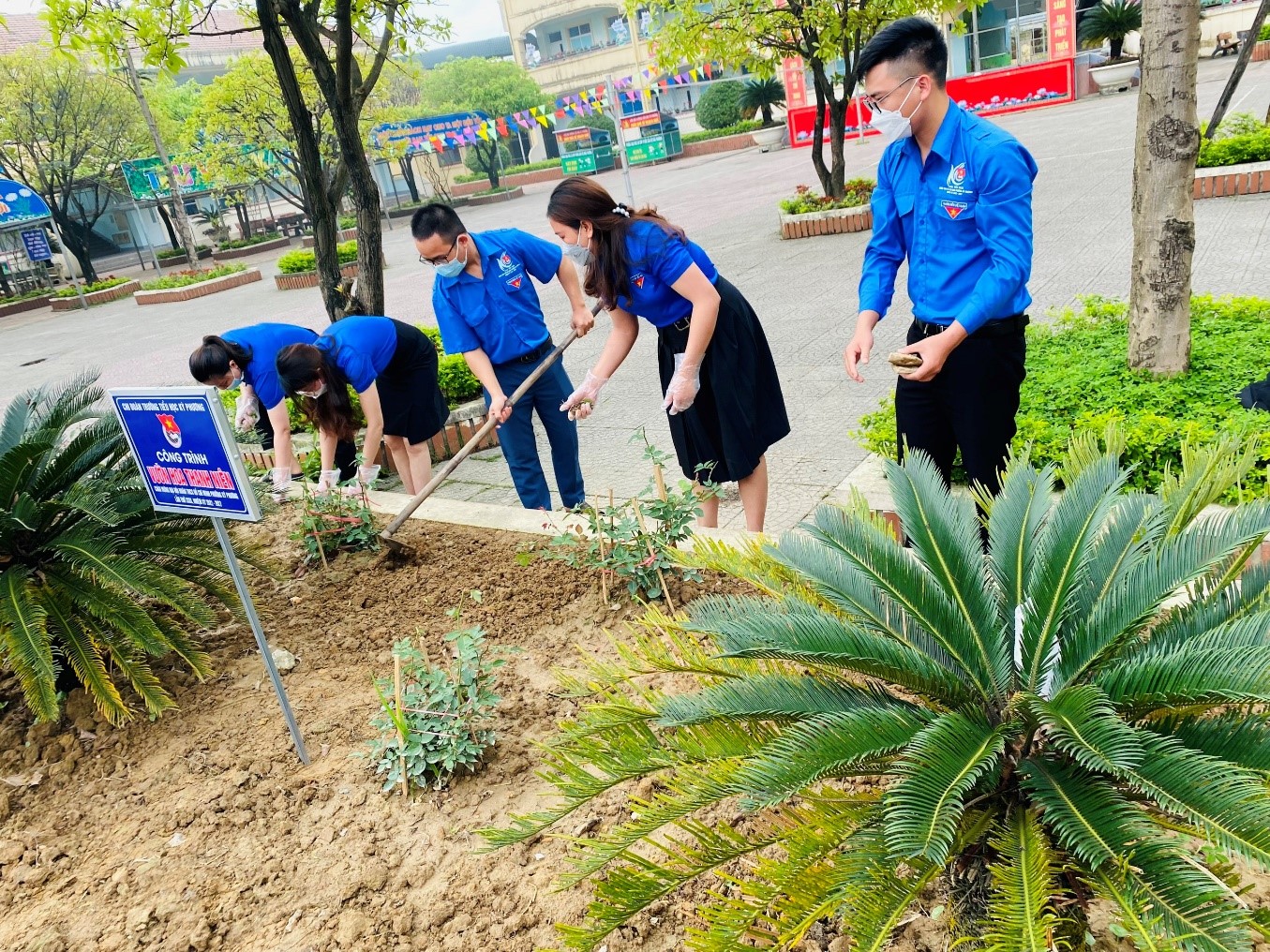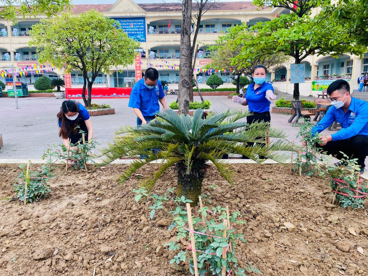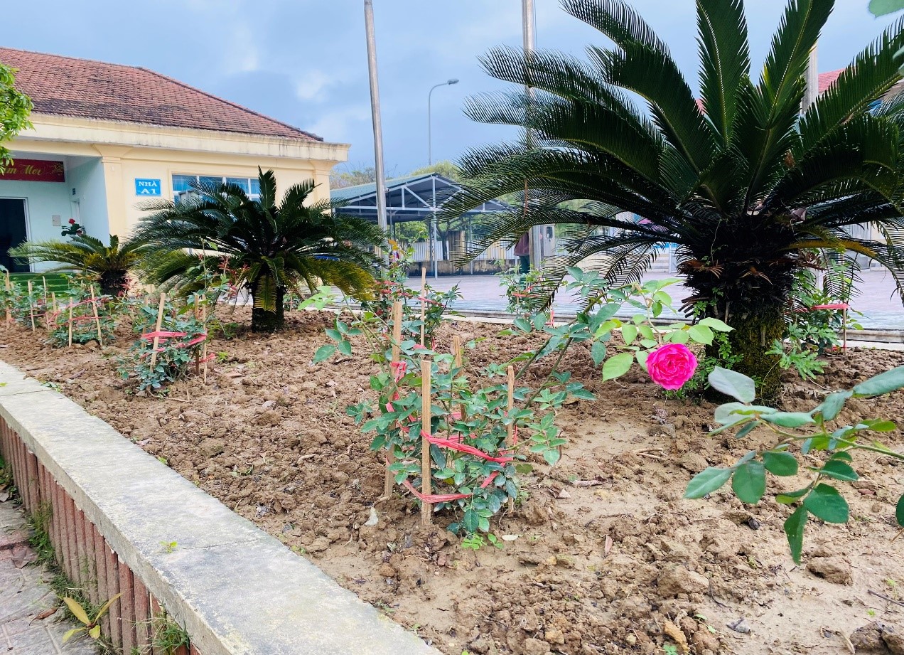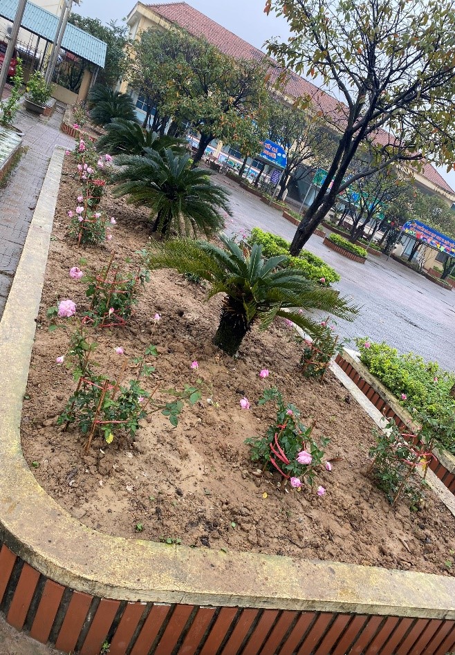 Kết quả, 2 bồn hoa lớn đã được dọn sạch cỏ, trồng lại các loại hoa hồng đủ màu sắc. Hằng ngày, các đồng chí ĐVTN thường xuyên tưới và nhổ cỏ chăm sóc cho các bồn hoa.